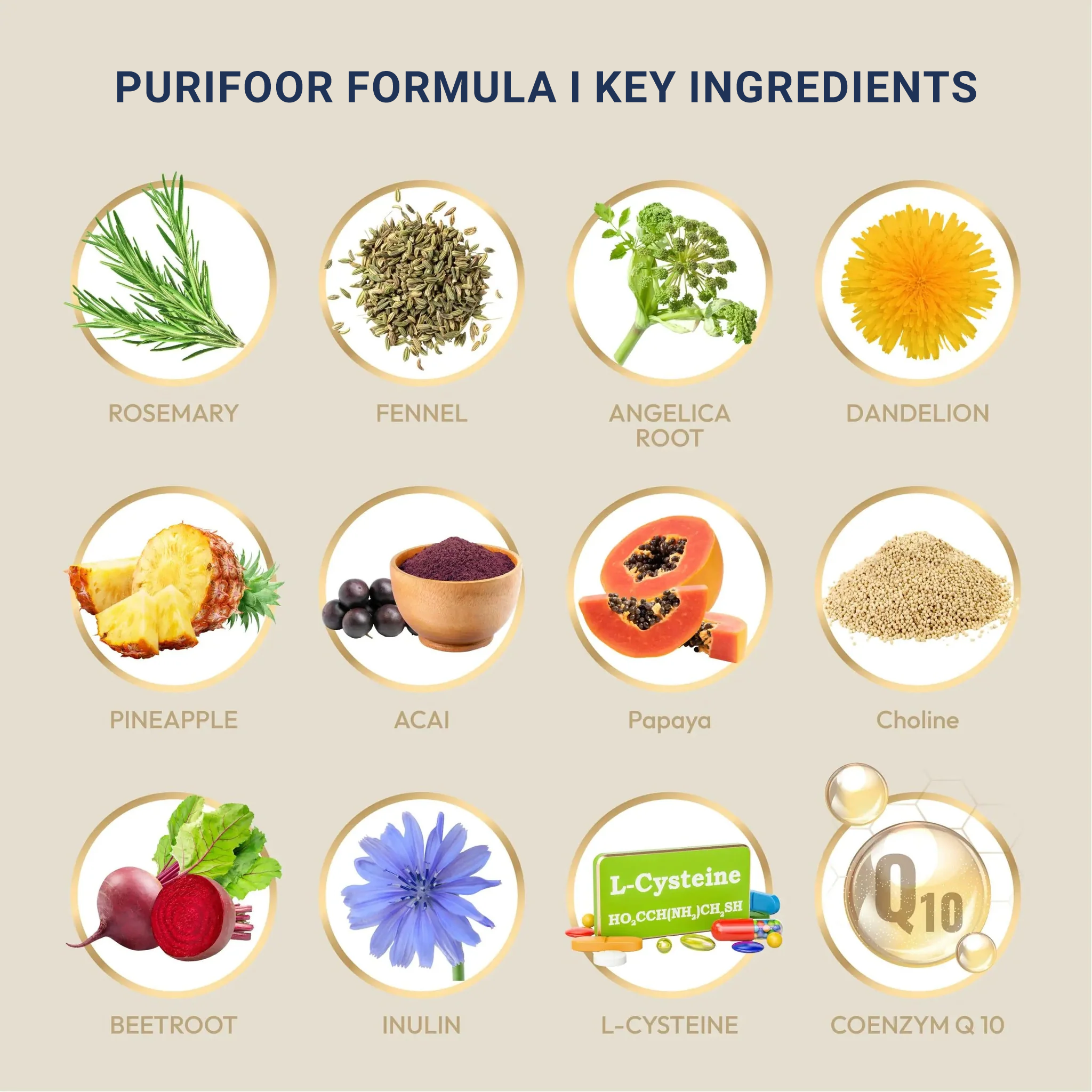 The Purifoor Formula has a refreshing, slightly acidic, plant-based taste.