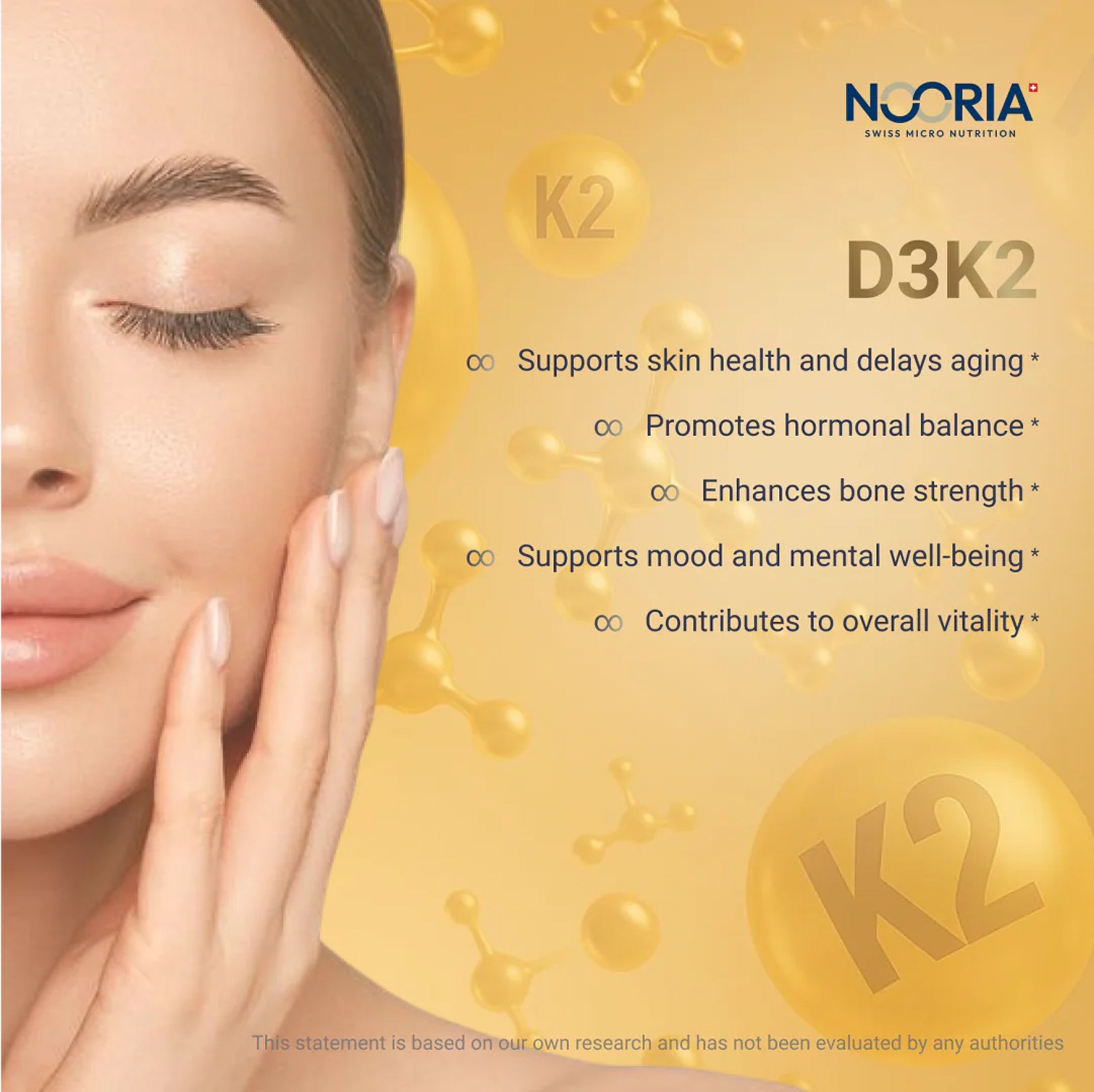 Formulated with Pycnogenol and astaxanthin for powerful antioxidant protection, enhanced with omega-3 EPA/DHA (Omégavie) and borage omega-6 for skin hydration and cellular health. Enriched with D3K2 mix for comprehensive beauty and longevity support.
